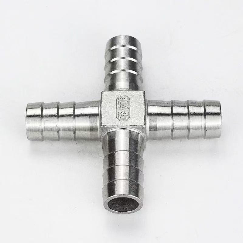 சீனாவில் குழாய் பொருத்துதல்களின் தொழில்முறை உற்பத்தியாளராக, ஷென்சி தொழிற்சாலை குறுக்கு-வகை பகோடா நீர் குழாய் பொருத்தி-நான்கு வழி திசைதிருப்பல் கூறுகளை வழங்குகிறது. அதன் முக்கிய அமைப்பானது நான்கு குறுக்கு வடிவ "பகோடா" (முள்வேலி) துறைமுகங்களைக் கொண்டுள்ளது, ஒரு திரவ உள்ளீட்டை மூன்று கிளைக் கோடுகளாக சமமாக விநியோகிக்க அல்லது பல உள்ளீடுகளை ஒன்றாக இணைக்க வடிவமைக்கப்பட்டுள்ளது. பித்தளை, 304 துருப்பிடிக்காத எஃகு அல்லது 316L துருப்பிடிக்காத எஃகு ஆகியவற்றால் கட்டப்பட்டது, தயாரிப்பு விதிவிலக்கான அரிப்பு எதிர்ப்பை வெளிப்படுத்துகிறது மற்றும் நீர் சுத்திகரிப்பு, வாயு அமைப்புகள், விவசாய நீர்ப்பாசனம் மற்றும் மருத்துவ உபகரணங்களுக்கு ஏற்றது. முள்வேலி முகடுகளில் ஸ்லிப் எதிர்ப்பு பள்ளம் வடிவமைப்பு உள்ளது; ஹோஸ் கிளாம்ப்களுடன் இணைந்து பயன்படுத்தும்போது, ​​அவை பாதுகாப்பான இணைப்பை உறுதி செய்கின்றன, எளிதான நிறுவலை எளிதாக்குகின்றன, மேலும் திறமையான "ஒன்-இன், த்ரீ-அவுட்" திரவ திசைதிருப்பலை செயல்படுத்துகின்றன.